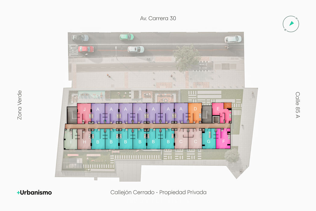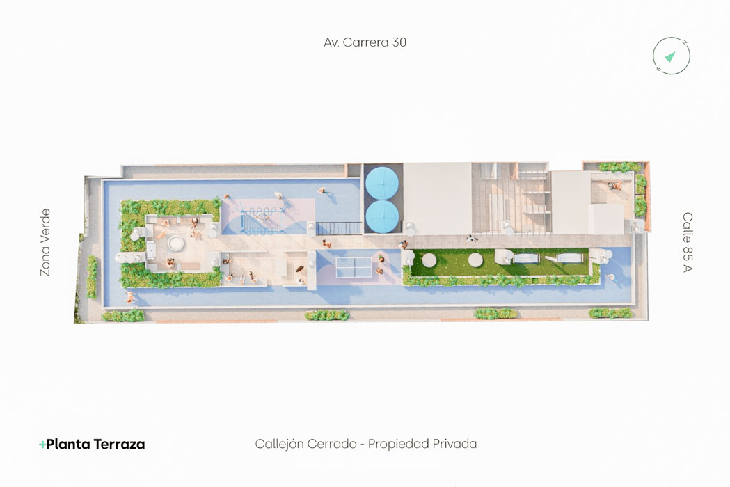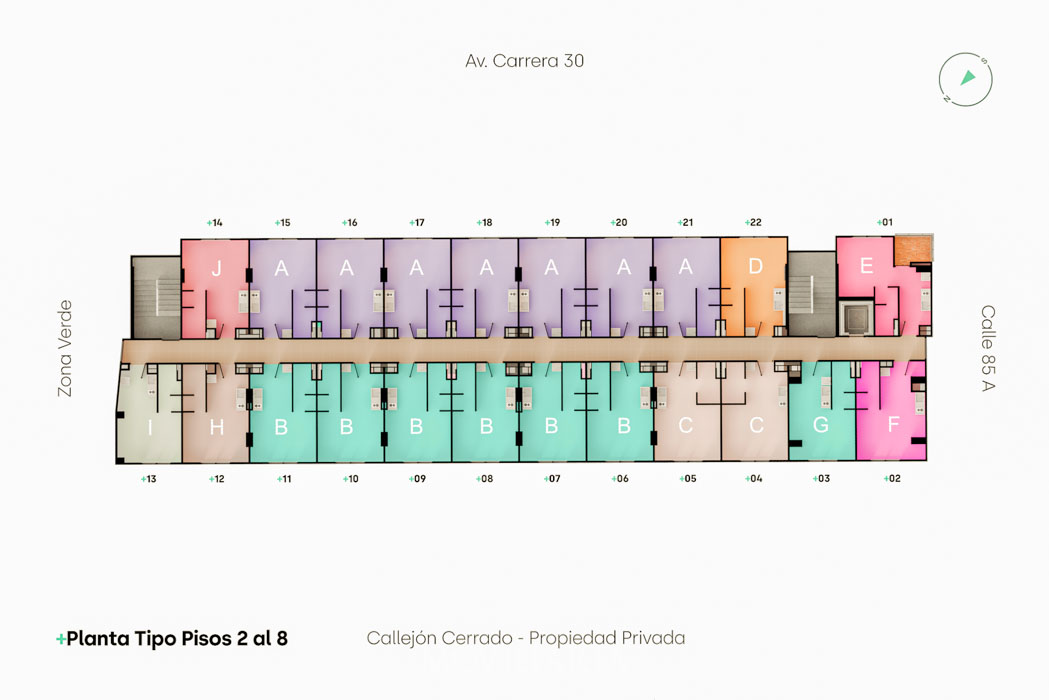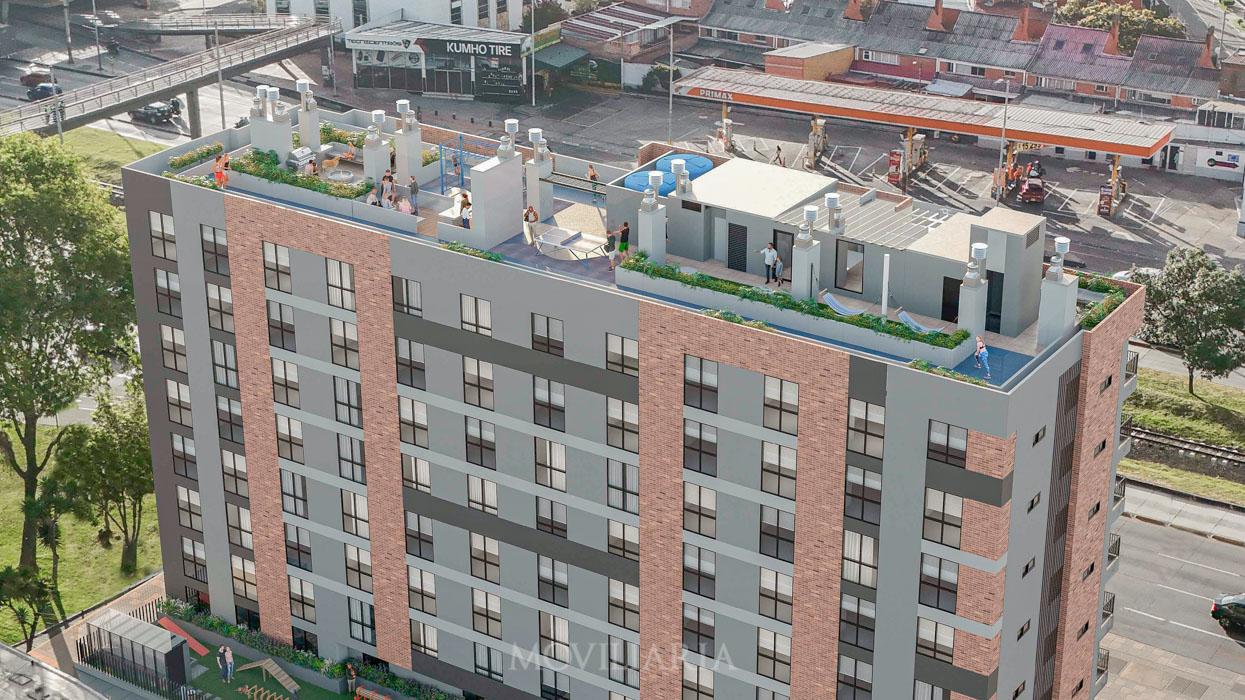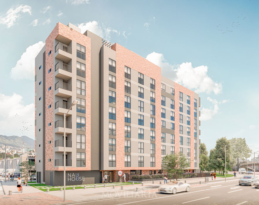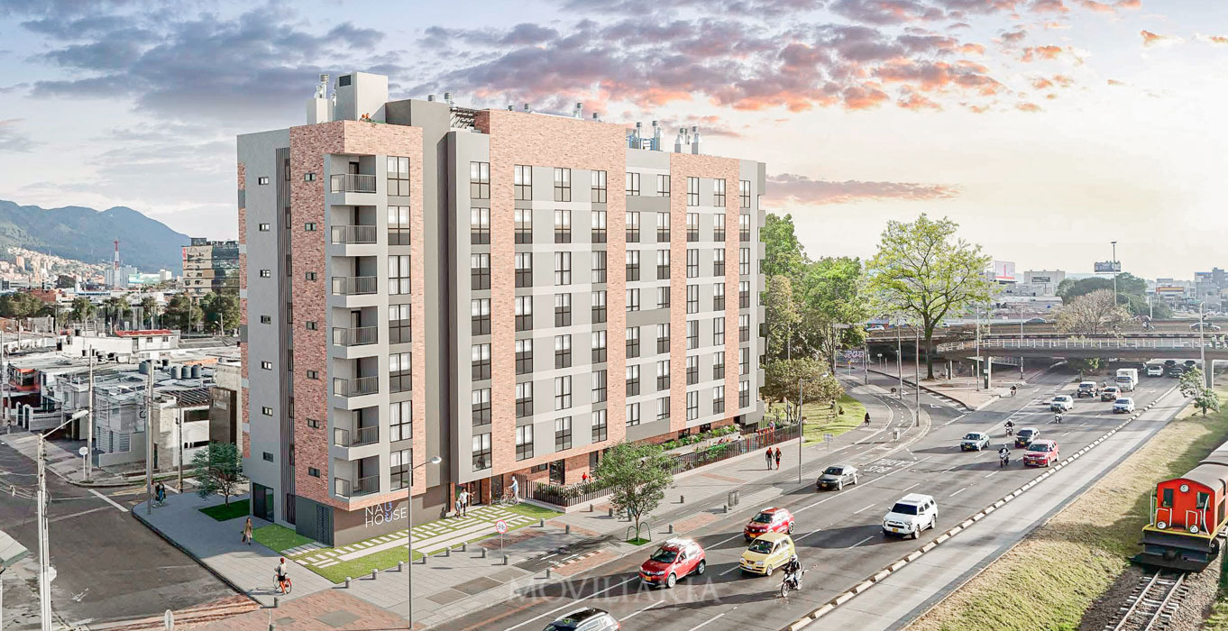 Nau House, apartaestudios en Polo Club, Bogotá. 163 unidades de 20 m², 8 pisos, terraza transitable. Acceso a Carrera 30, Calle 80, Autopista Norte. Cerca de Parque el Virrey y Centro Comercial Andino. Ideal para vivir y trabajar.