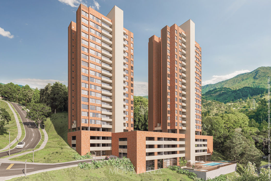 Prana, proyecto exclusivo de 2 torres en construcción tradicional, ubicado en Camino Verde, Envigado. Zona campestre y tranquila, cerca de la futura vía transversal de la montaña y el parque El Salado. A 10 min de Loma del Escobero.