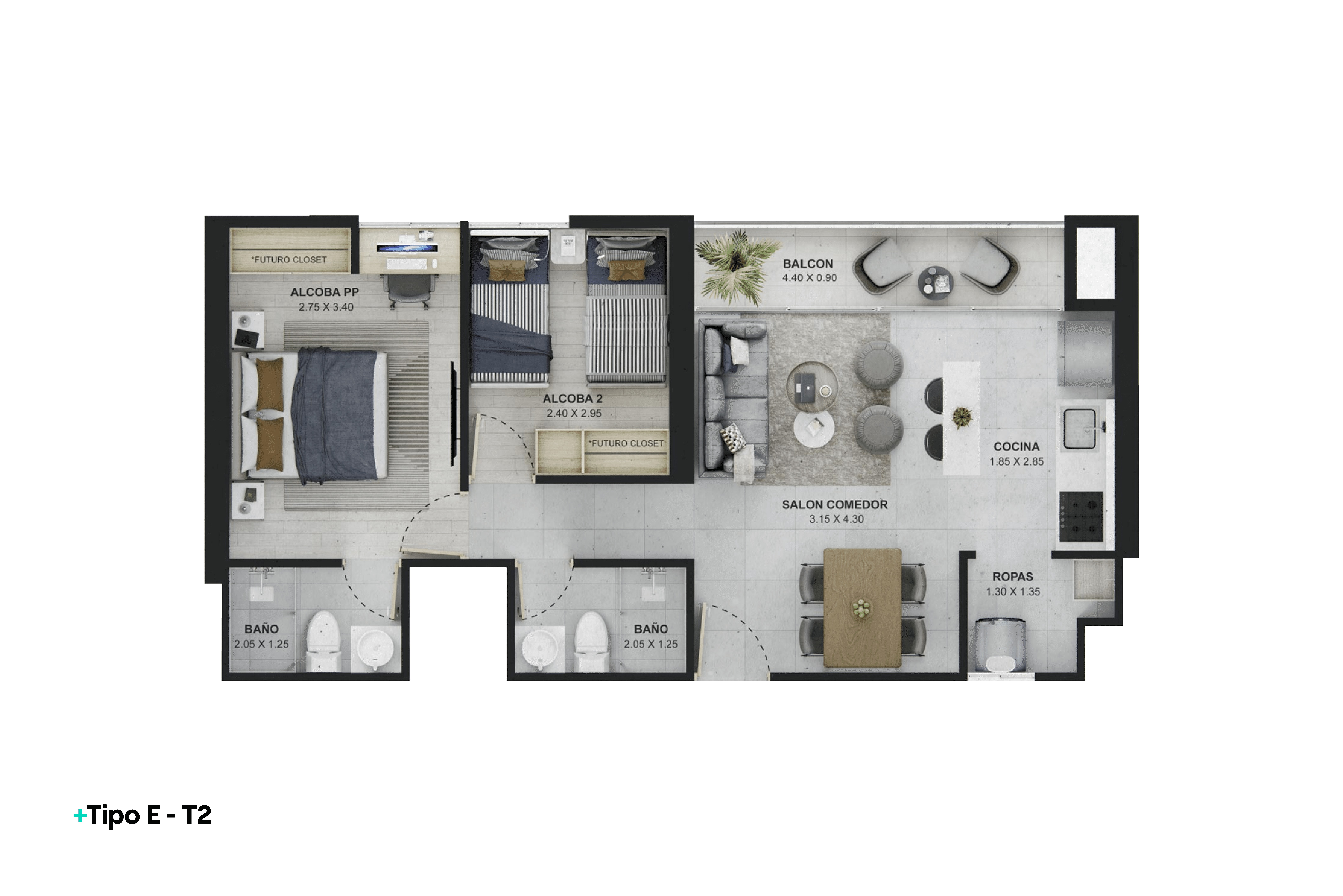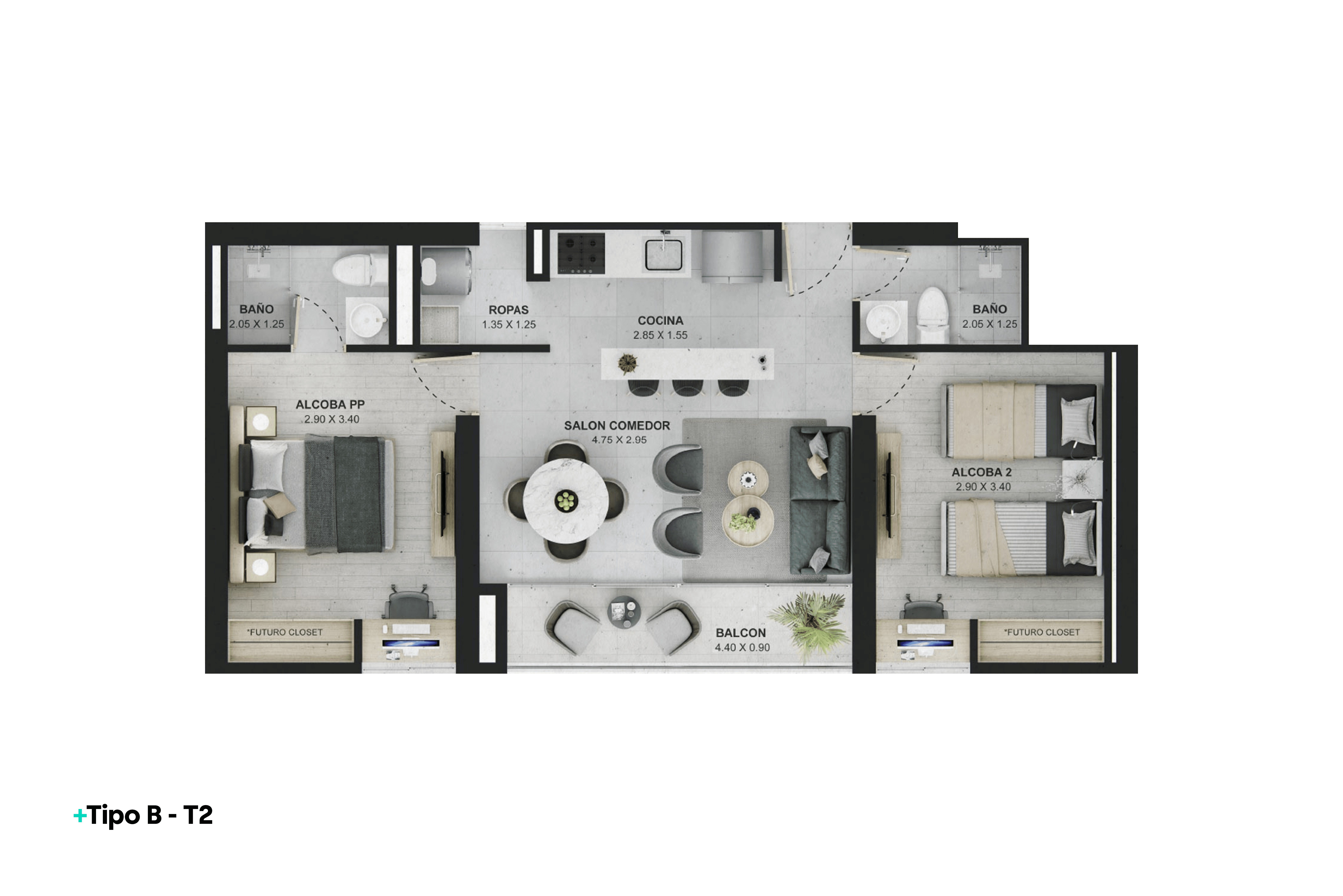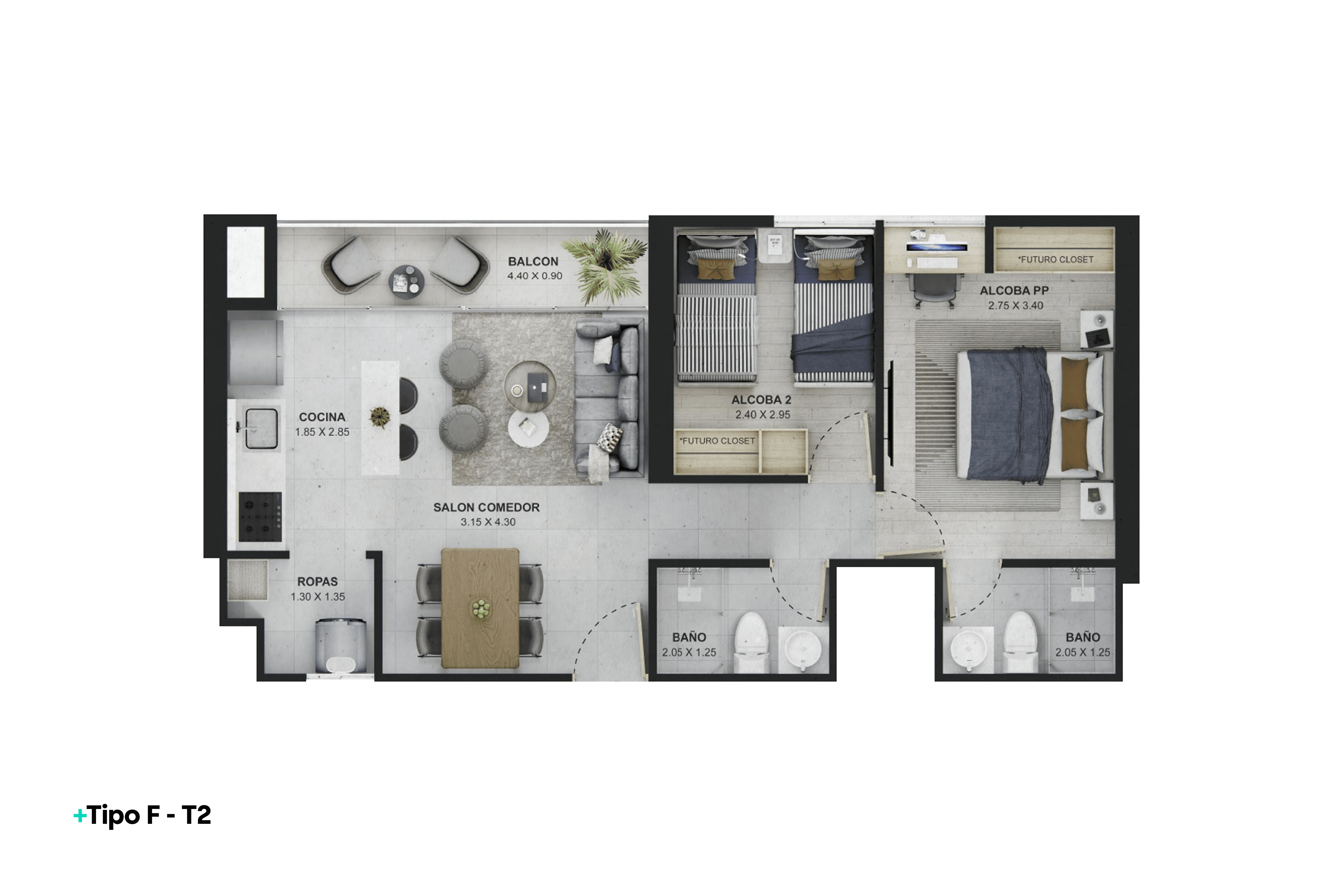 | REF 1513: Apartamento en Ditaires | $417 M | 2 | 2 | 1 | 55.98 |