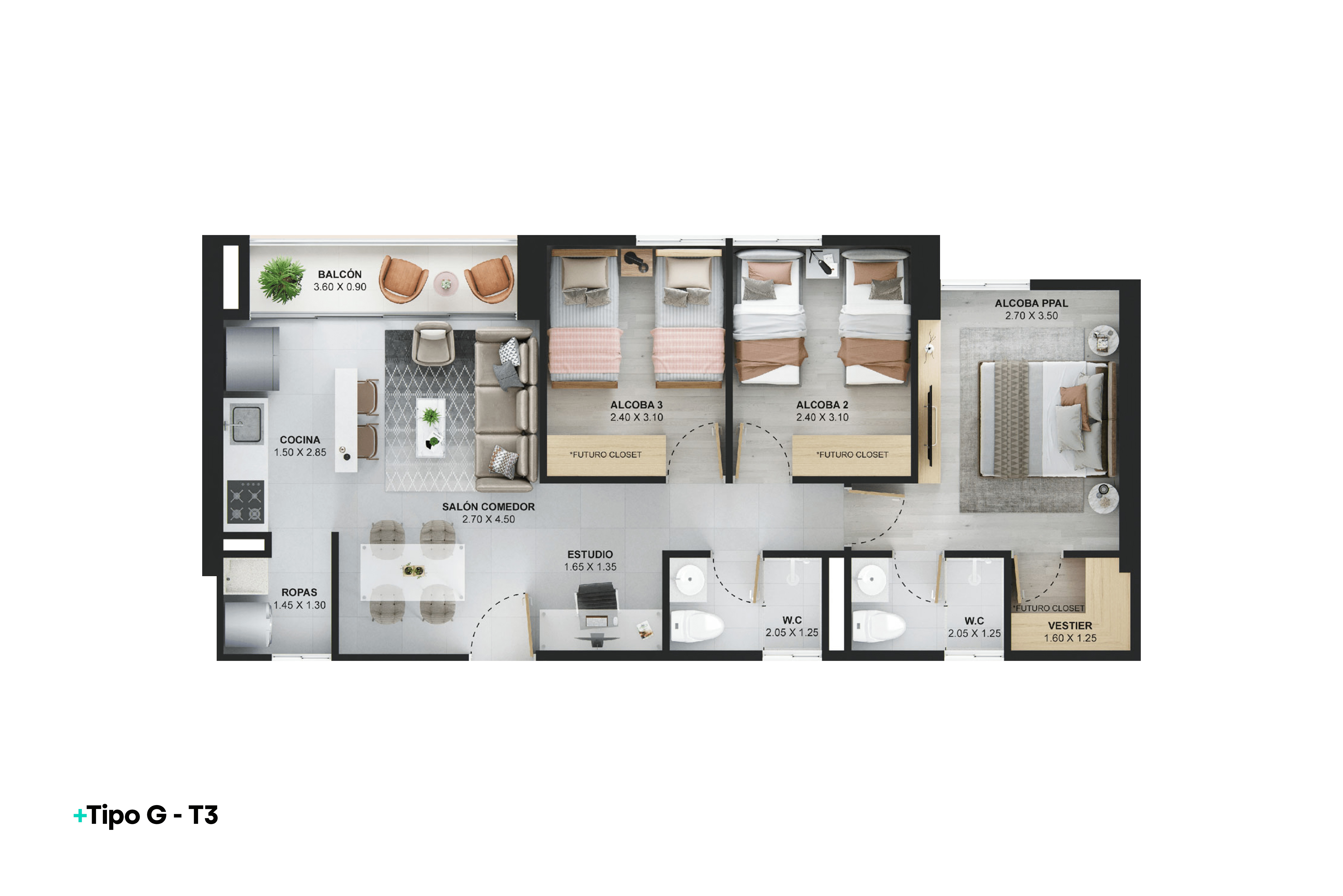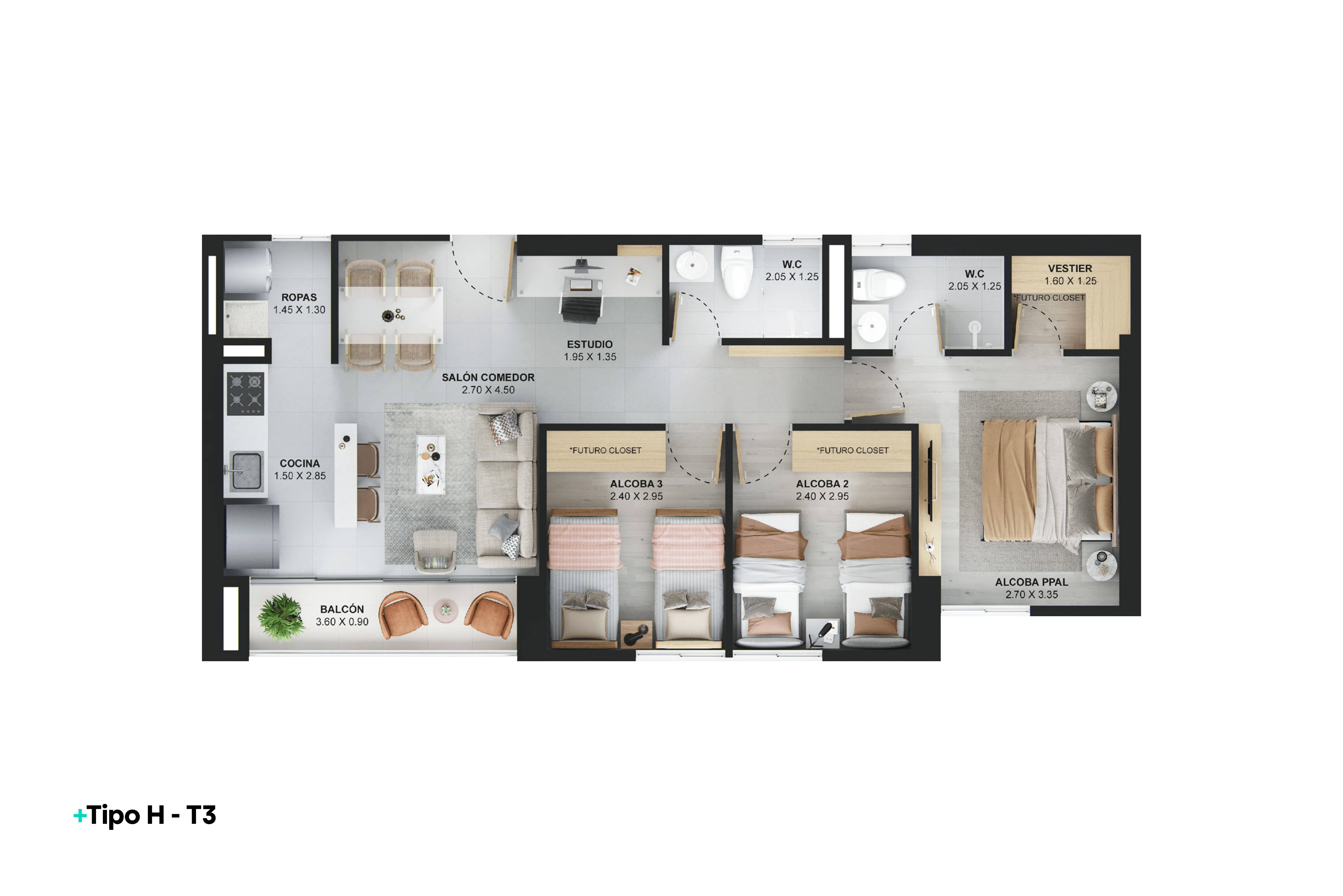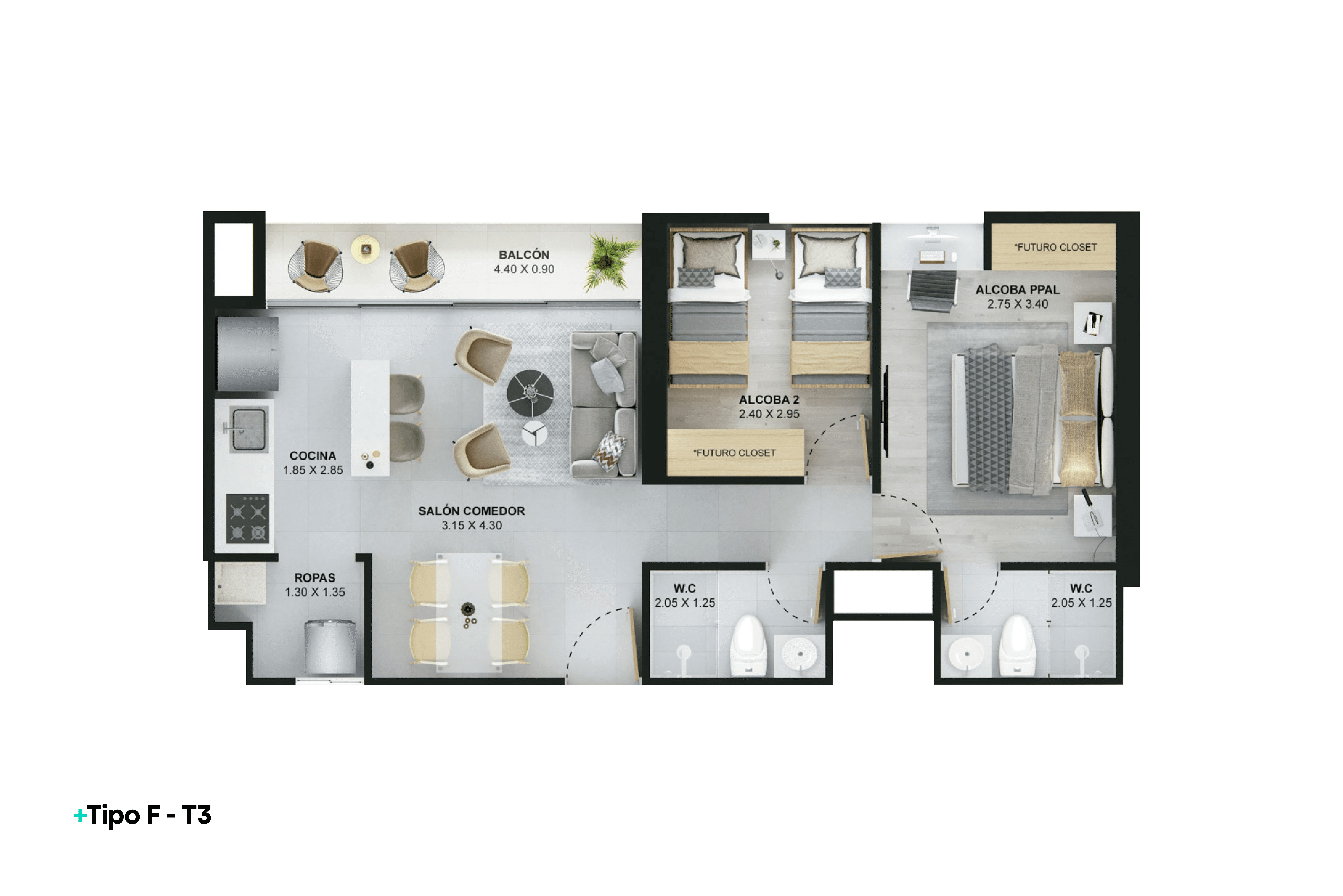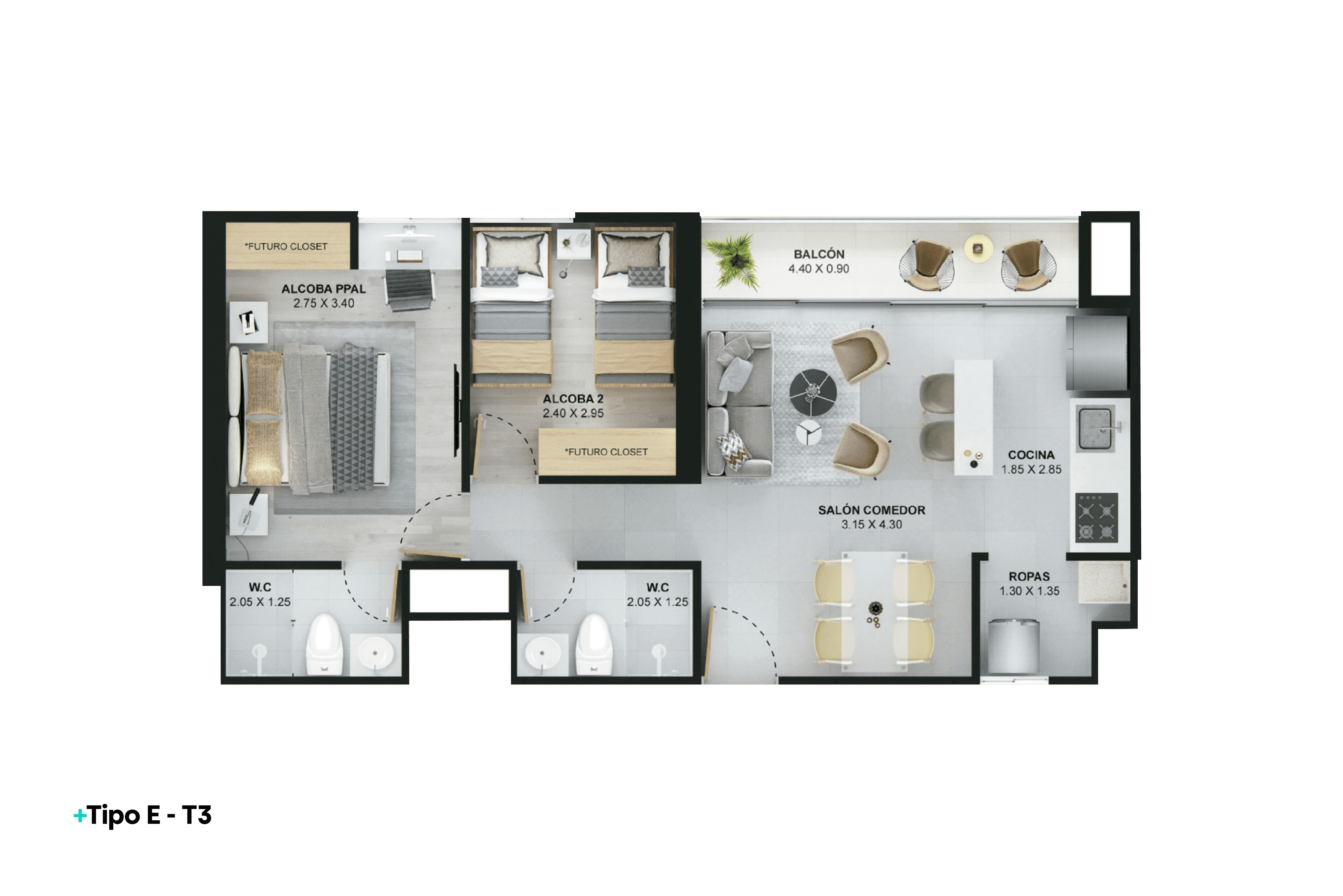 | REF 1513: Apartamento en Ditaires | $417 M | 2 | 2 | 1 | 55.98 |