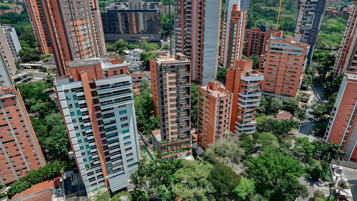 Olmo, exclusivo proyecto de 28 apartamentos frente al Parque Santa María de los Ángeles II en El Poblado, Medellín. Torre única e imponente con espacios amplios que conectan con la naturaleza y prometen alta valorización.