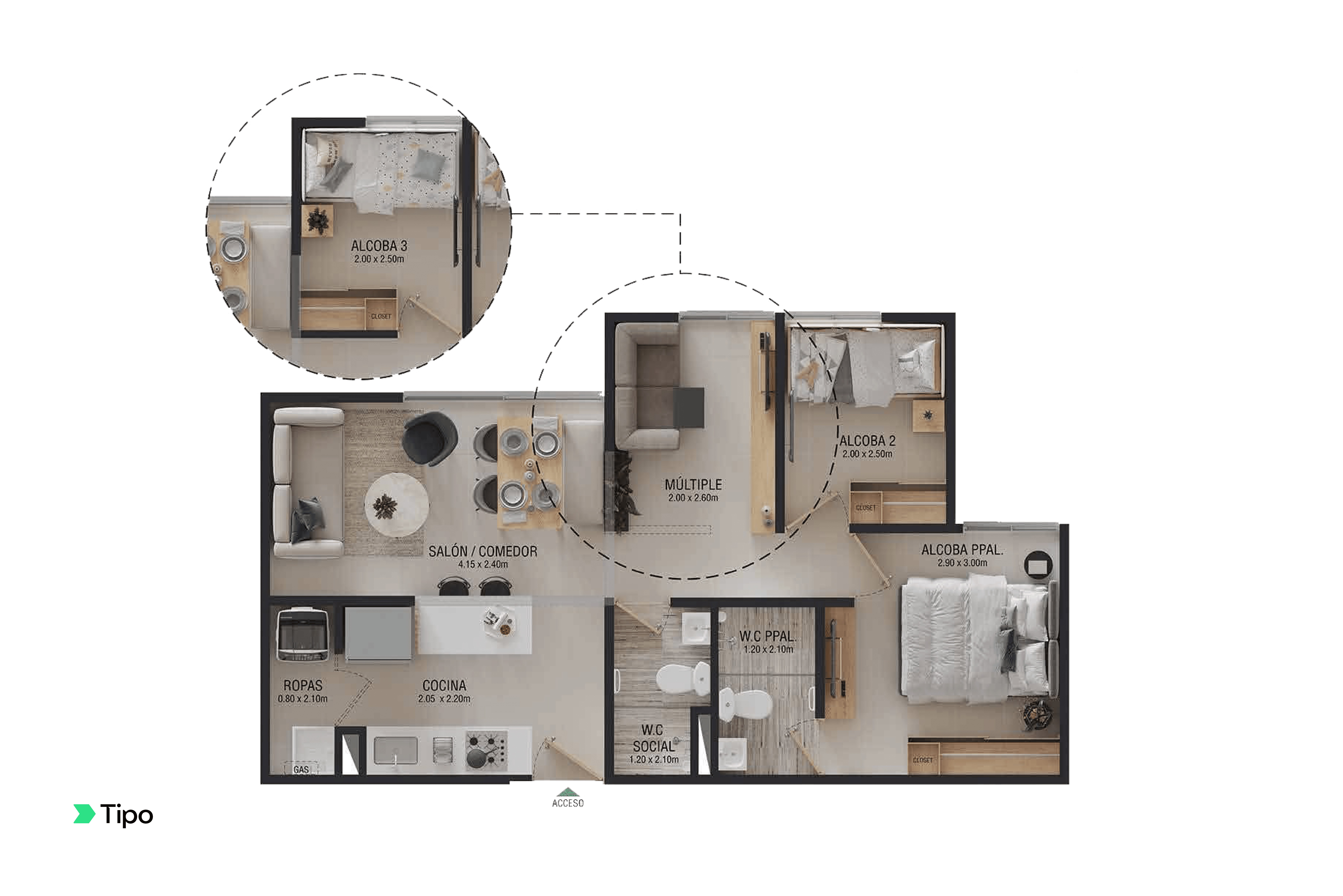 | REF 1365: Apartamento en Alto Del Medio | $178 M | 3 | 2 | - | 48 |