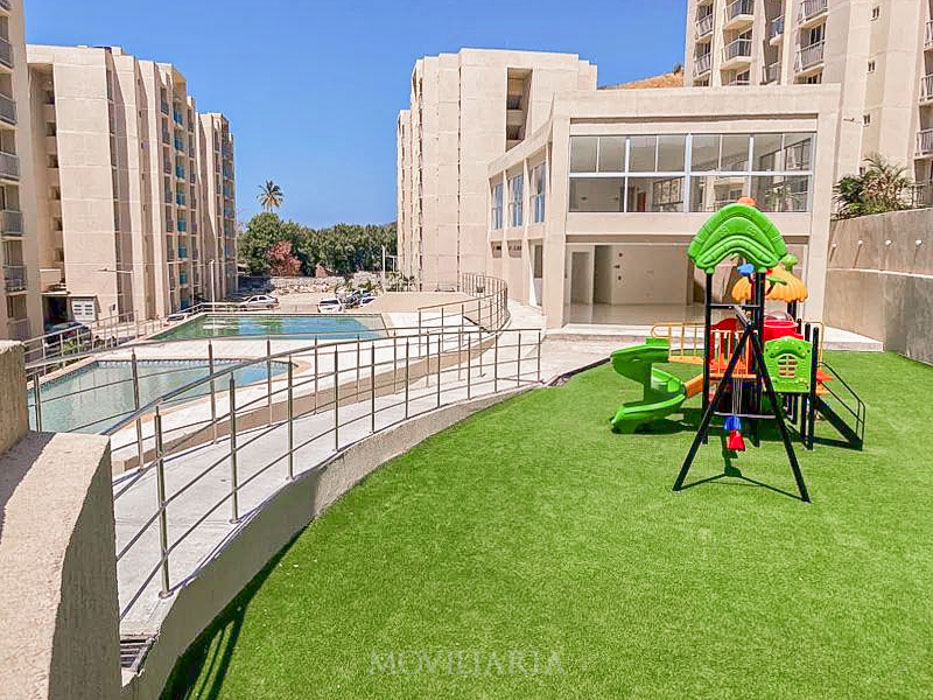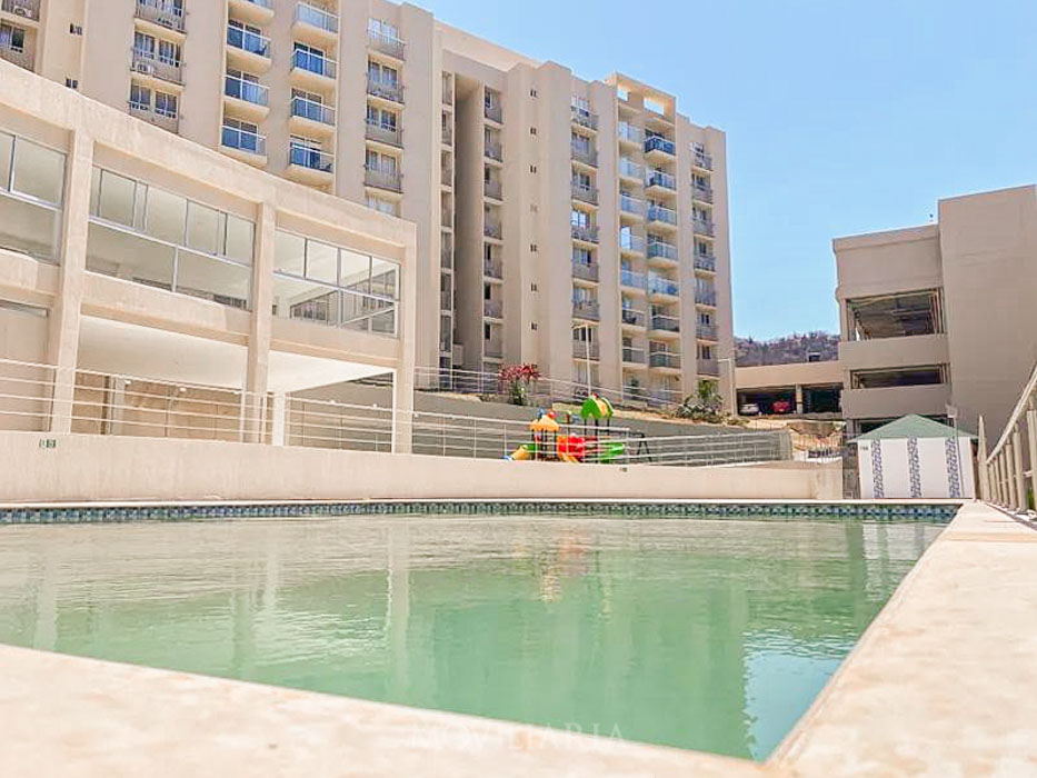 Venecia Central, ubicado en Carrera 5 #34-385, Barrio San Pablo, Santa Marta, a 5 min de la bahía. 5 torres de 8 pisos, 288 apartamentos, acceso individual, ascensor y parqueaderos con ascensor propio.